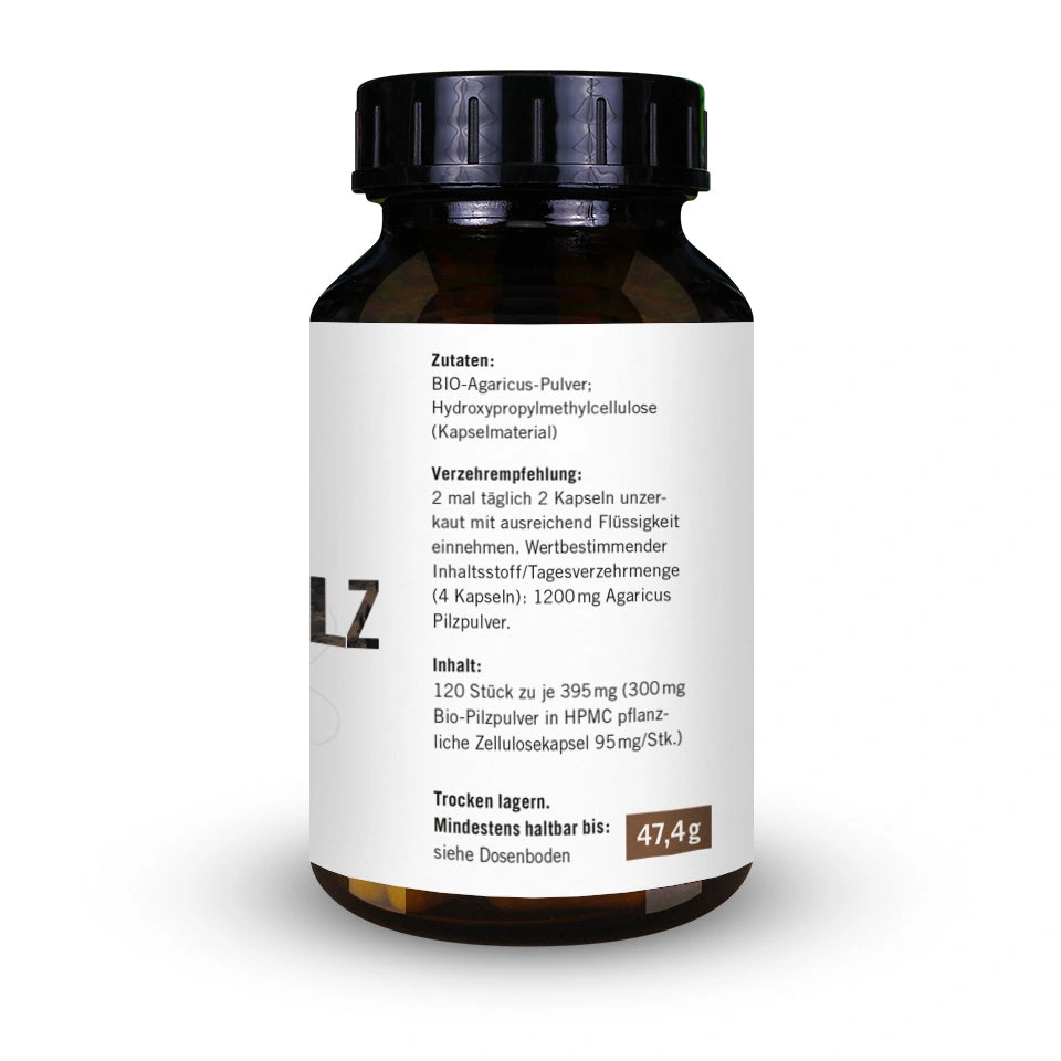120 de capsule, fiecare conținând 300 mg de pulbere de Agaricus Blazei Murill.